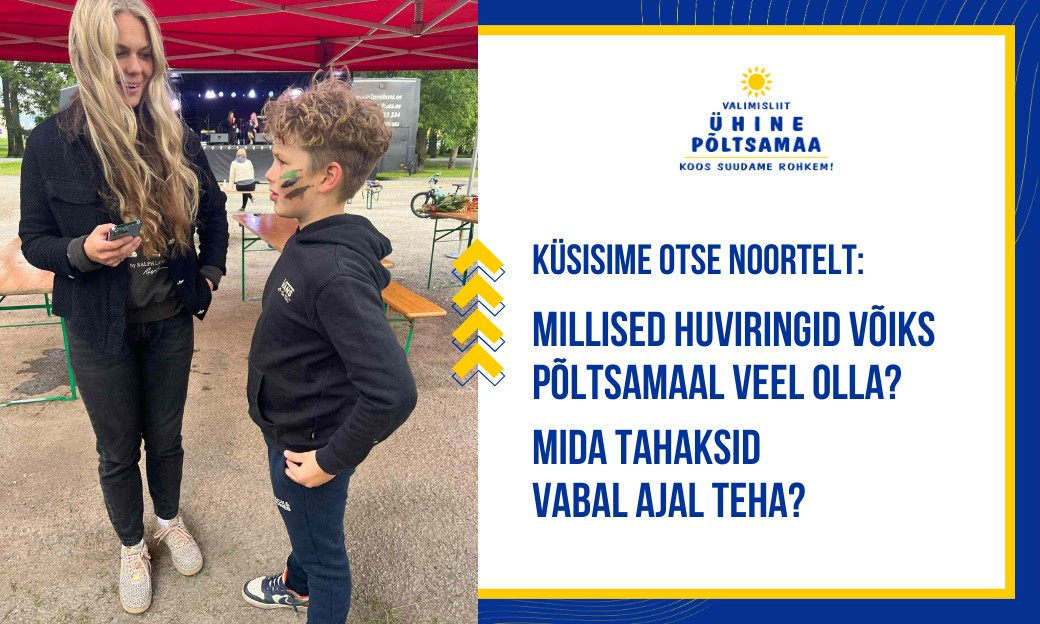 Laste ja noorte arvamus on meie jaoks väga oluline. On tähtis, et noortel oleks Põltsamaal hea olla, enda oskusi siin arendada ja mõnusalt vaba aega veeta. Koos suudame luua parema Põltsamaa!